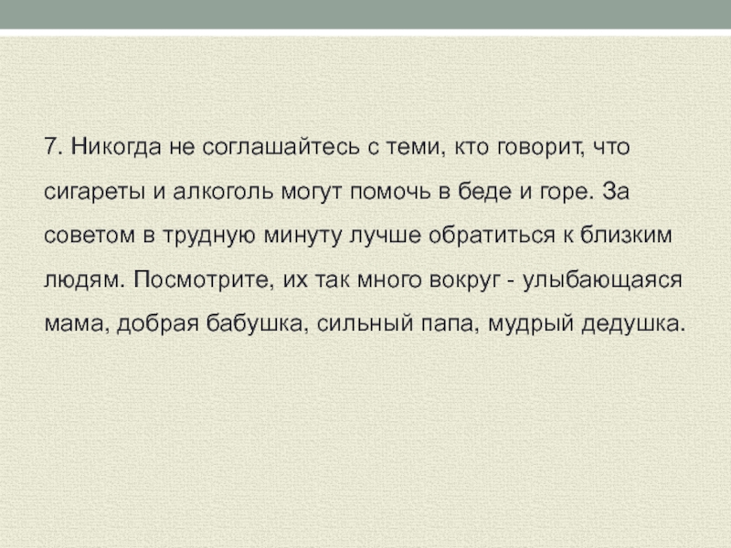 7. Никогда не соглашайтесь с теми, кто говорит, что сигареты и алкоголь могут помочь в беде и