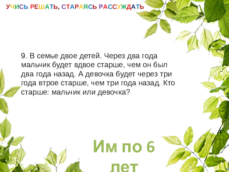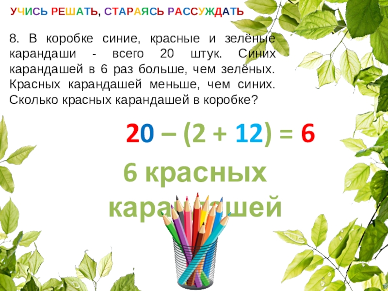 УЧИСЬ РЕШАТЬ, СТАРАЯСЬ РАССУЖДАТЬ