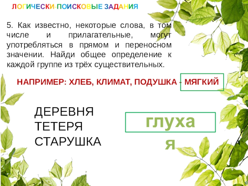 НАПРИМЕР: ХЛЕБ, КЛИМАТ, ПОДУШКА - МЯГКИЙ