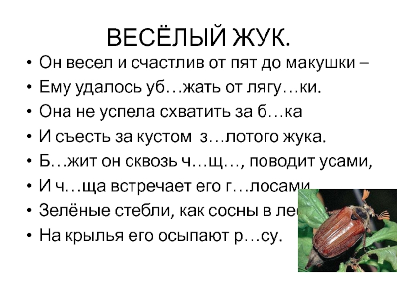 Слайд 12ВЕСЁЛЫЙ ЖУК.