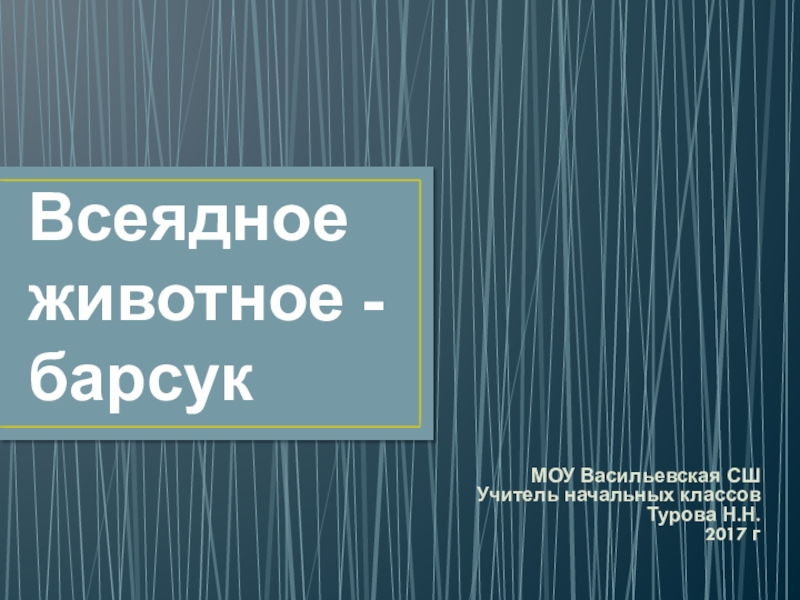 Всеядное животное - барсукМОУ Васильевская СШ Учитель начальных классов Турова Н.Н. 2017 г