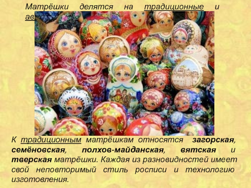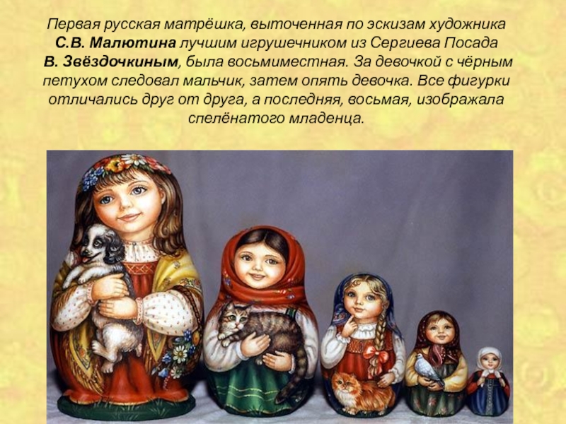 Матрёшка уже много лет является символом России и одним из самых популярных сувениров, покупаемых заграничными туристами. Русская деревянная расписная кукла появилась в России в 90-х годах XIX века.