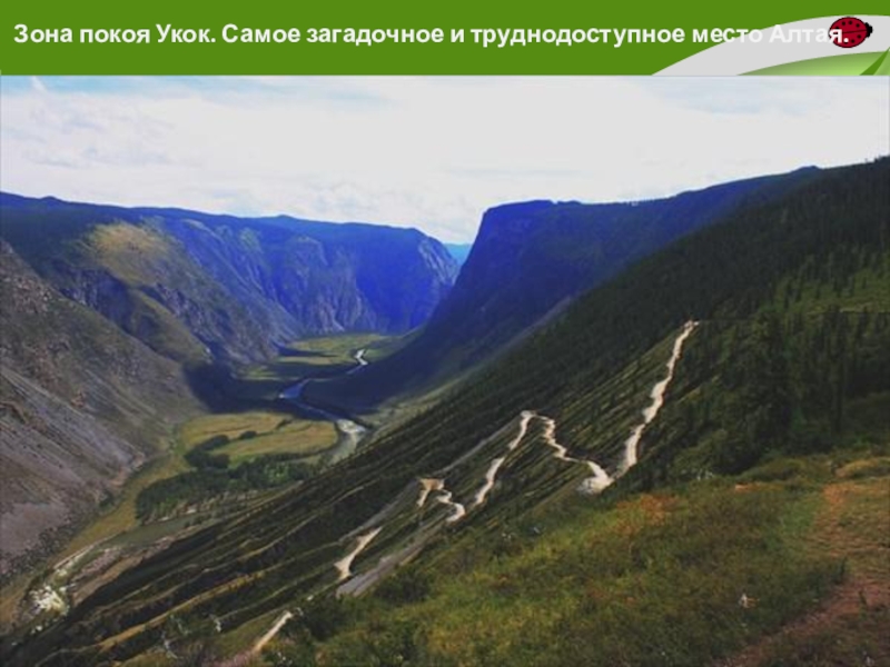 Слайд 39 Зона покоя Укок. Самое загадочное и труднодоступное место Алтая.