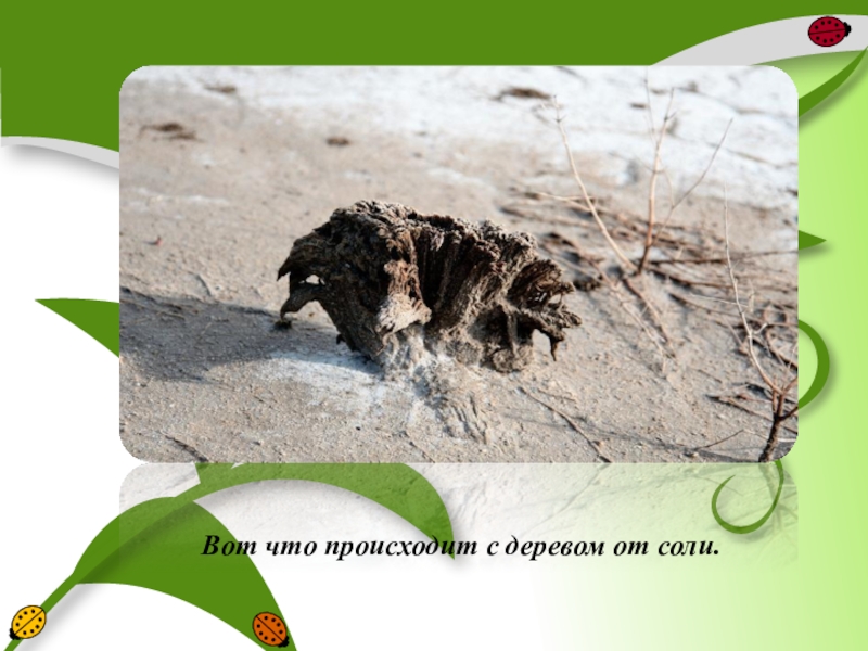 Слайд 24Вот что происходит с деревом от соли.