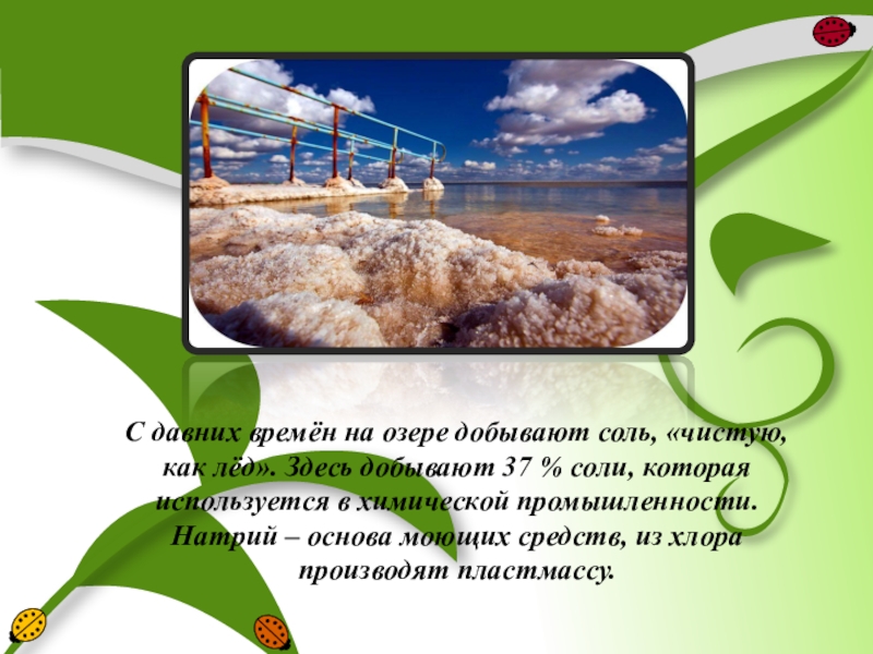 Слайд 22С давних времён на озере добывают соль, «чистую, как лёд». Здесь