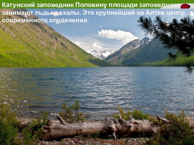 Слайд 37Катунский заповедник Половину площади заповедника занимают льды и скалы. Это крупнейший