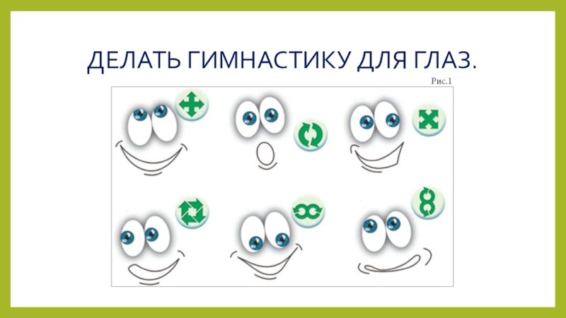 Слайд 15ДЕЛАТЬ ГИМНАСТИКУ ДЛЯ ГЛАЗ.