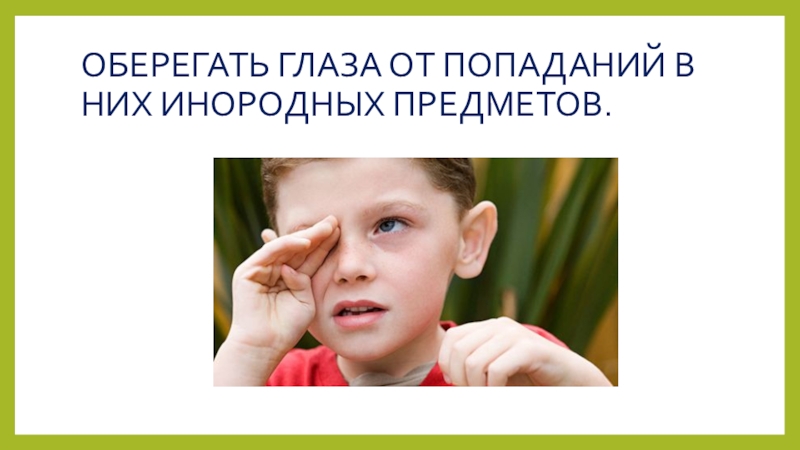 Слайд 13ОБЕРЕГАТЬ ГЛАЗА ОТ ПОПАДАНИЙ В НИХ ИНОРОДНЫХ ПРЕДМЕТОВ.