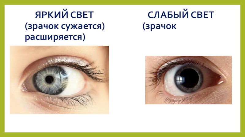 СЛАБЫЙ СВЕТ (зрачок сужается) (зрачок расширяется)