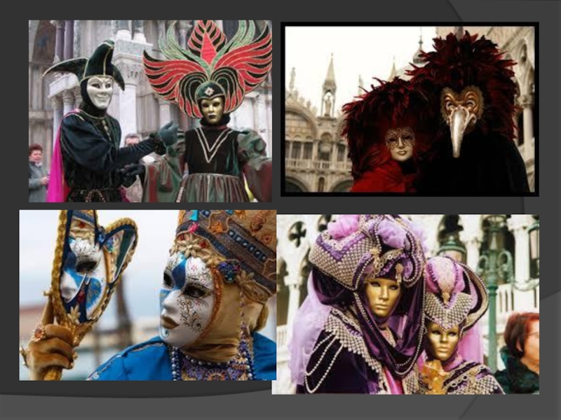 Каждый год в Венеции на площади Сан – Марко проходит карнавал. Главными атрибутами карнавала стали