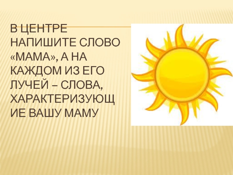 Слайд 8В центре напишите слово «мама», а на каждом из его лучей