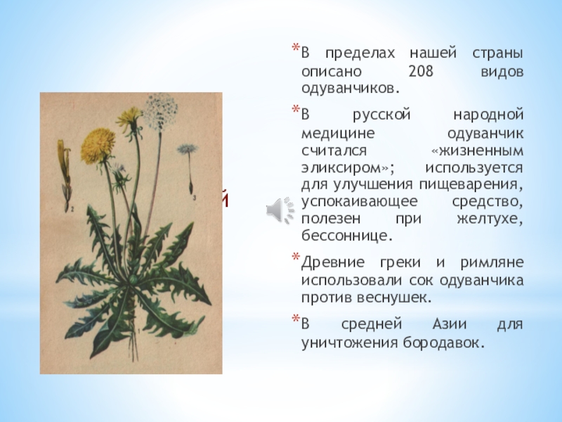 Слайд 42ОДУВАНЧИК ЛЕКАРСТВЕННЫЙ