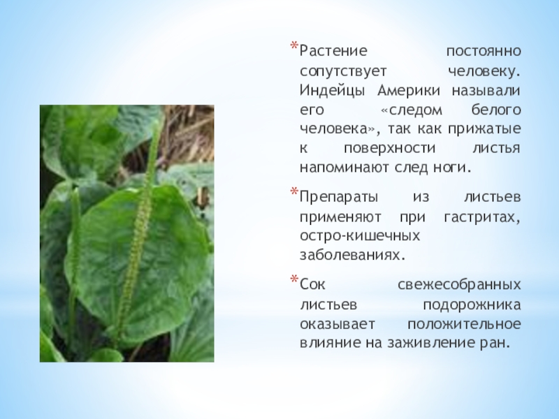 Растение постоянно сопутствует человеку. Индейцы Америки называли его «следом белого