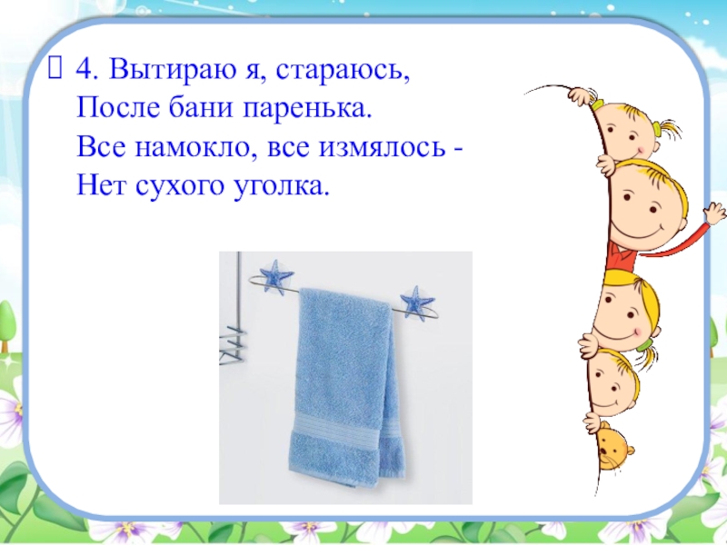 Слайд 94. Вытираю я, стараюсь, После бани паренька. Все намокло, все измялось - Нет сухого