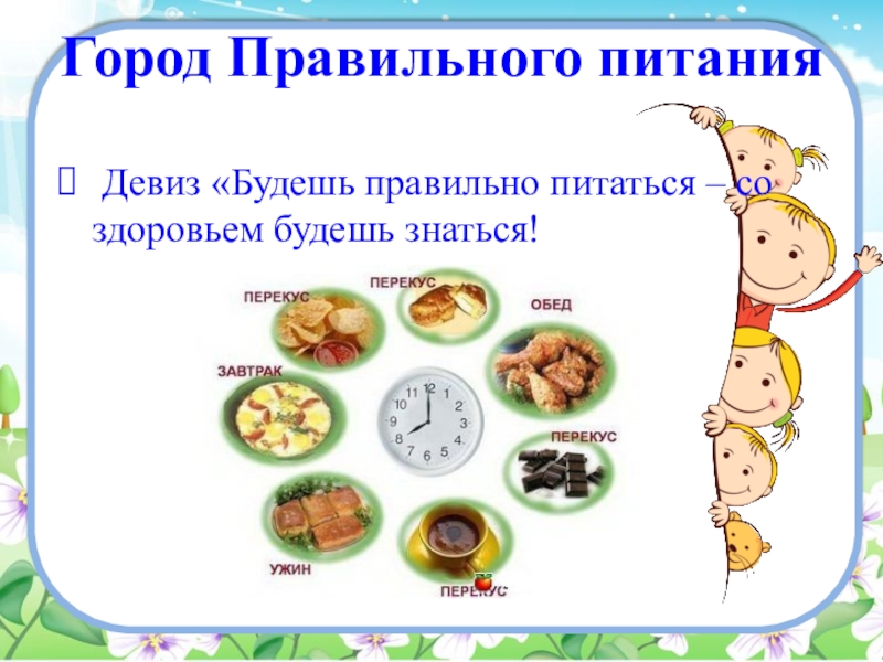 Город Правильного питания Девиз «Будешь правильно питаться – со здоровьем будешь знаться!