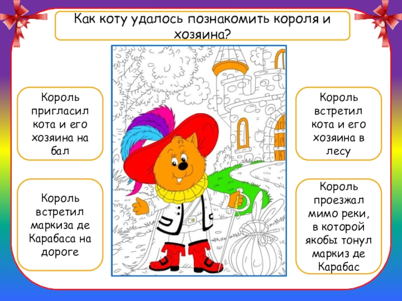 Король проезжал мимо реки, в которой якобы тонул маркиз де Карабас