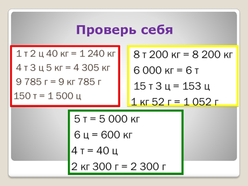 Установить взаимосвязь между единицами массы