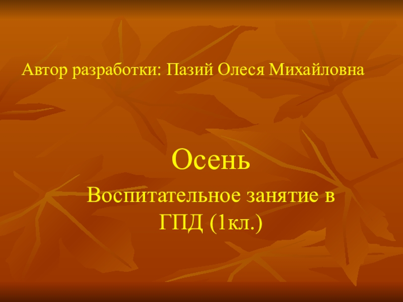 Автор разработки: Пазий Олеся МихайловнаОсеньВоспитательное занятие в ГПД (1кл.)