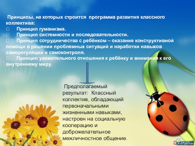 Предполагаемый результат: Классный коллектив, обладающий первоначальными жизненными навыками, настроен на социальную кооперацию и доброжелательное межличностное общение.