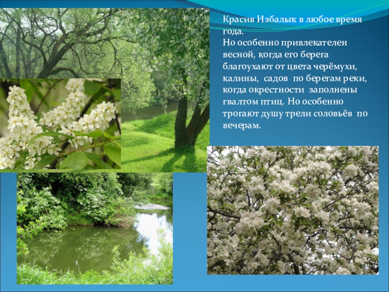 Слайд 4Река Избалык напоминает горную речку, с чистой, холодной, быстротекущей водой. Исток