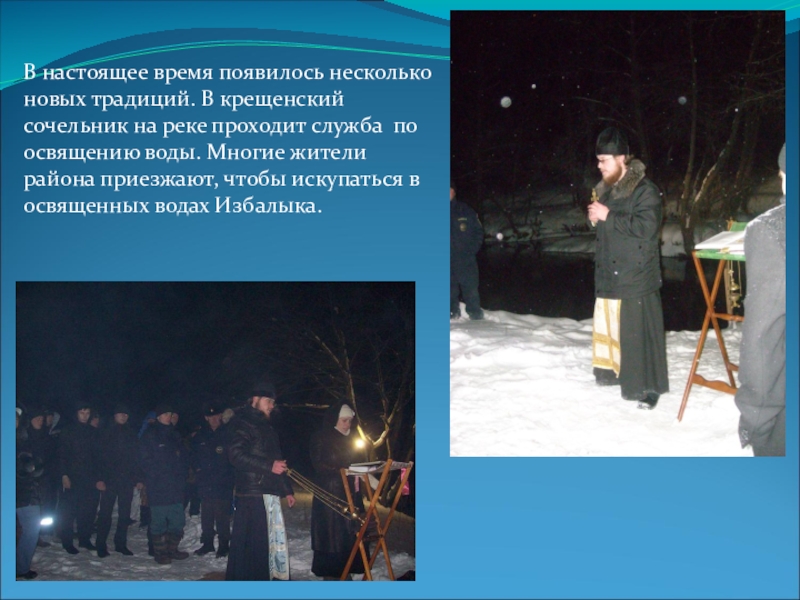 Слайд 16В настоящее время появилось несколько новых традиций. В крещенский сочельник на