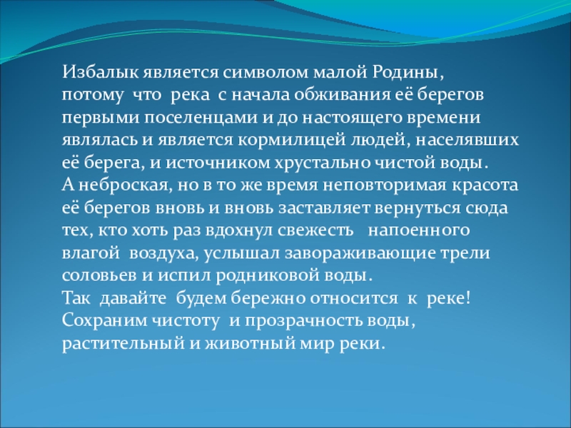 Слайд 10Действительно, река Избалык красивая и уникальная.