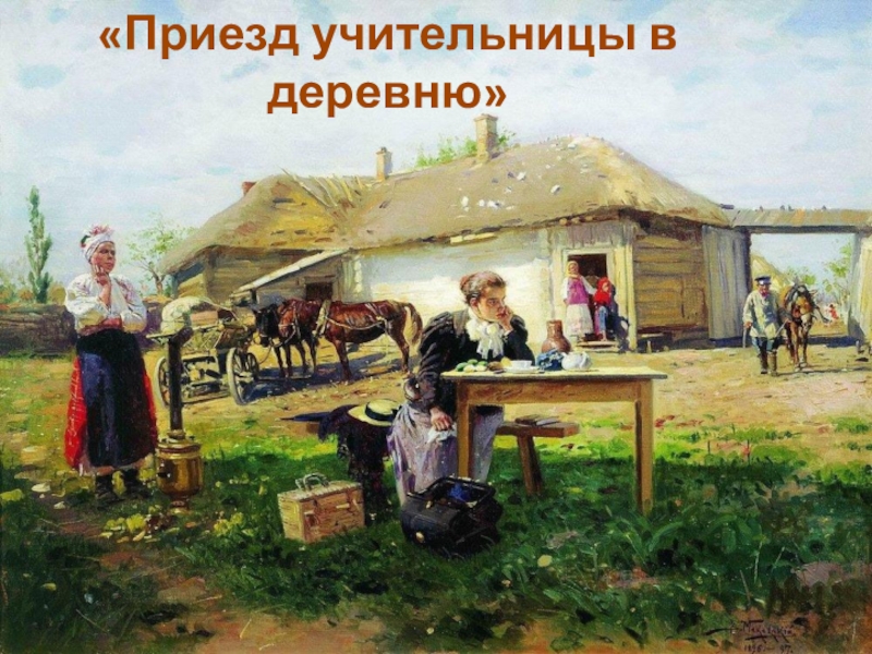Слайд 7«Приезд учительницы в деревню»