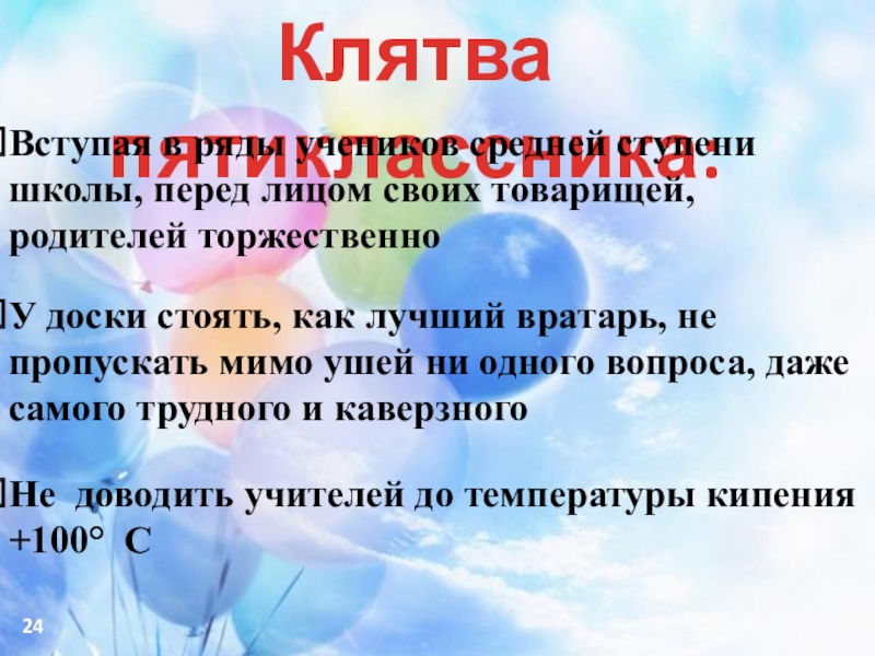 Вступая в ряды учеников средней ступени школы, перед лицом своих товарищей, родителей торжественно