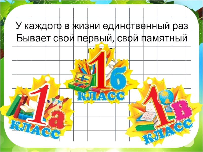 У каждого в жизни единственный разБывает свой первый, свой памятный класс!