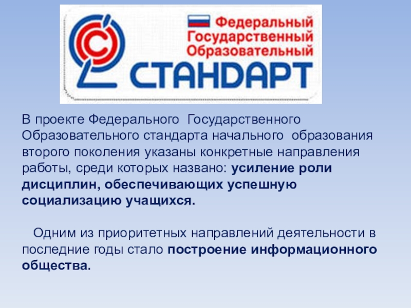 В проекте Федерального Государственного Образовательного стандарта начального образования второго поколения указаны