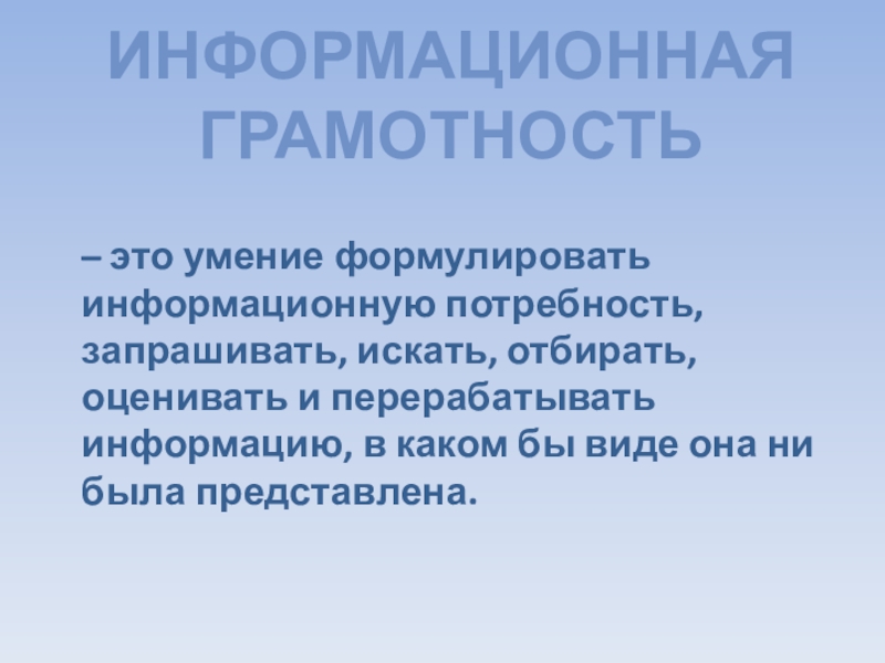 Слайд 1ИНФОРМАЦИОННАЯ ГРАМОТНОСТЬ