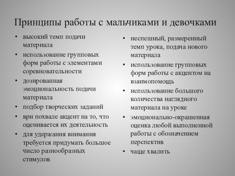 неспешный, размеренный темп урока, подача нового материала