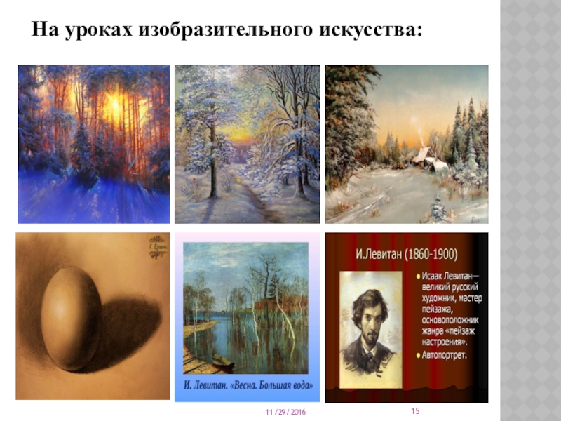 Слайд 15На уроках изобразительного искусства:
