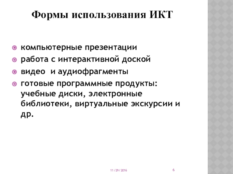 Слайд 6Формы использования ИКТ