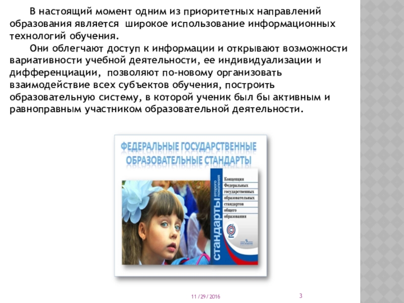 Слайд 3 В настоящий момент одним из приоритетных направлений образования является широкое использование