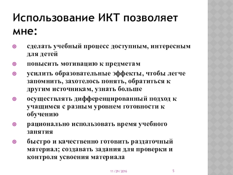 Слайд 5Использование ИКТ позволяет мне: