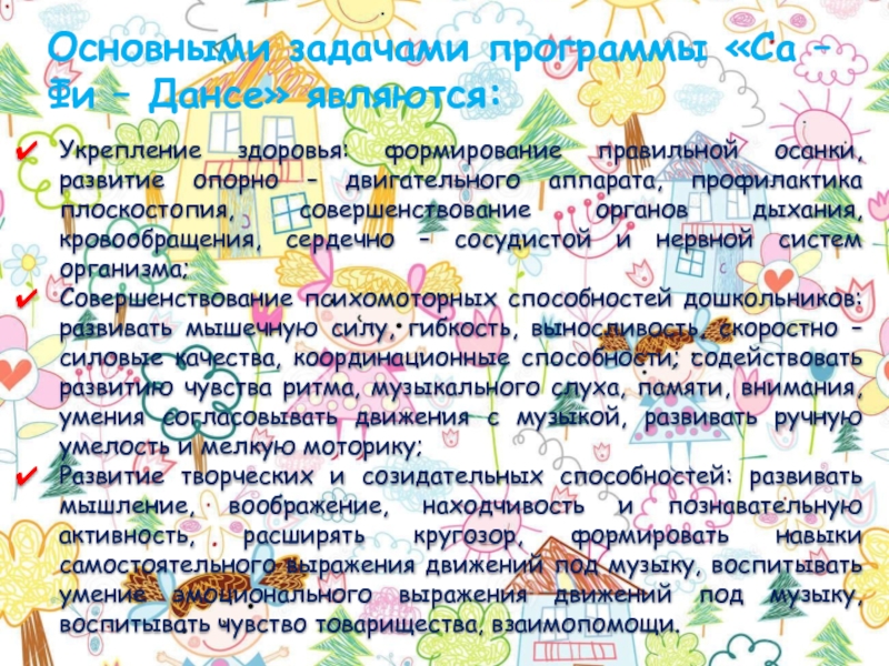 Слайд 6Основными задачами программы «Са – Фи – Дансе» являются: