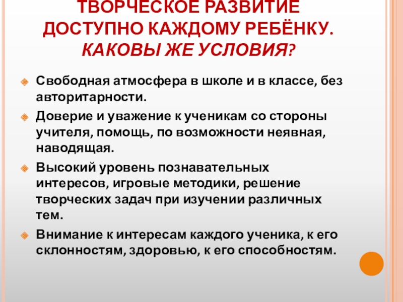 Слайд 13ТВОРЧЕСКОЕ РАЗВИТИЕ ДОСТУПНО КАЖДОМУ РЕБЁНКУ.