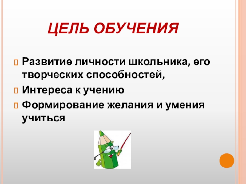 Развитие личности школьника, его творческих способностей,