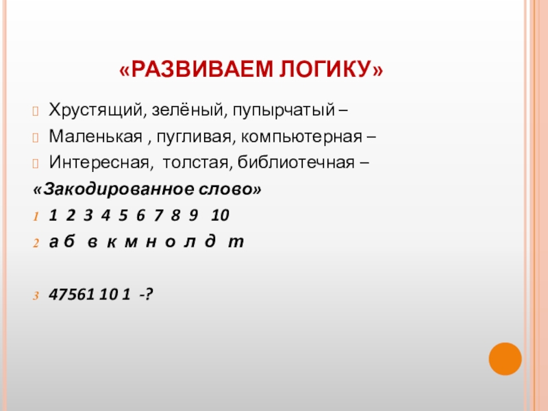 Слайд 11«РАЗВИВАЕМ ЛОГИКУ»