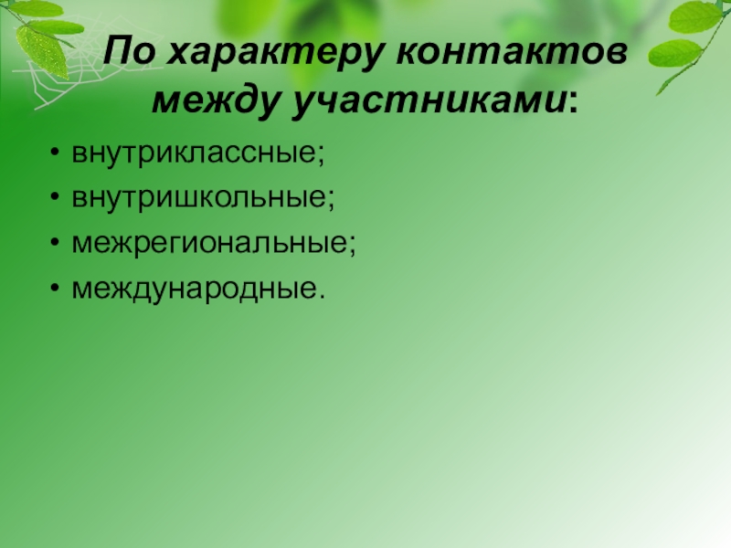 Слайд 7По характеру контактов между участниками: