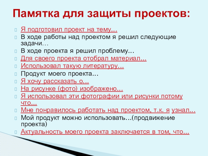 Памятка для защиты проектов: