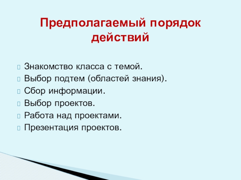 Предполагаемый порядок действий
