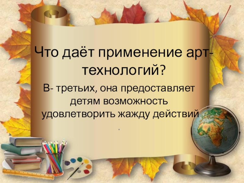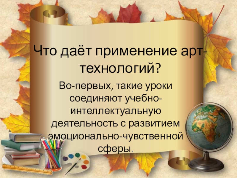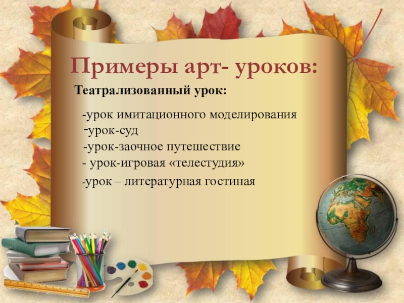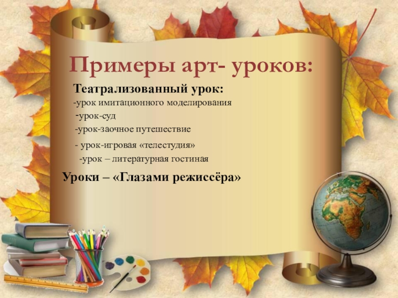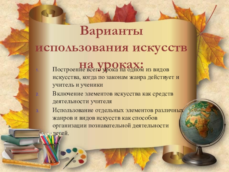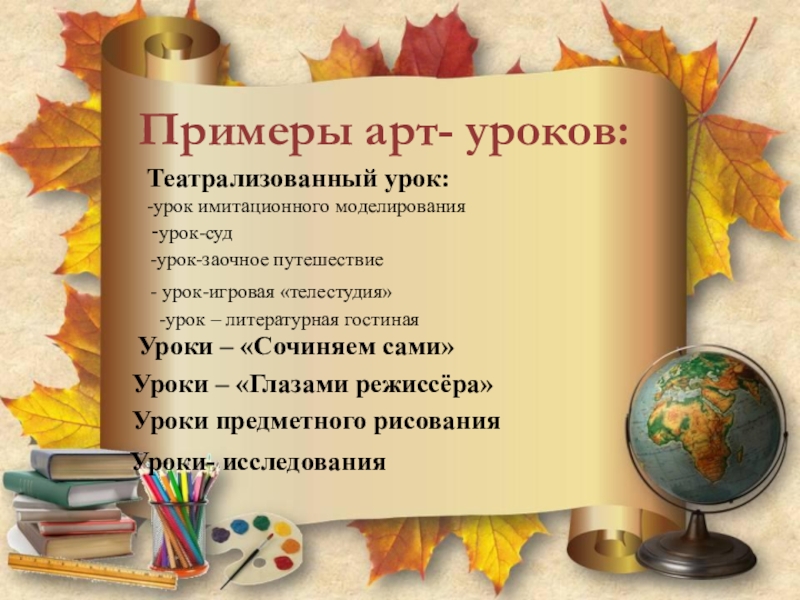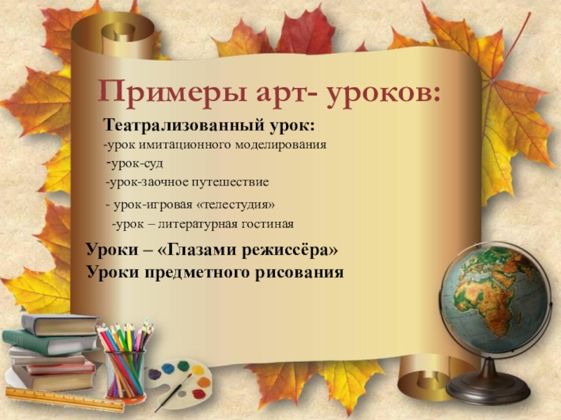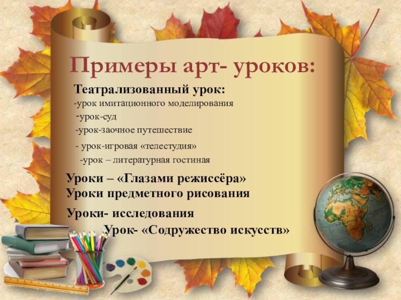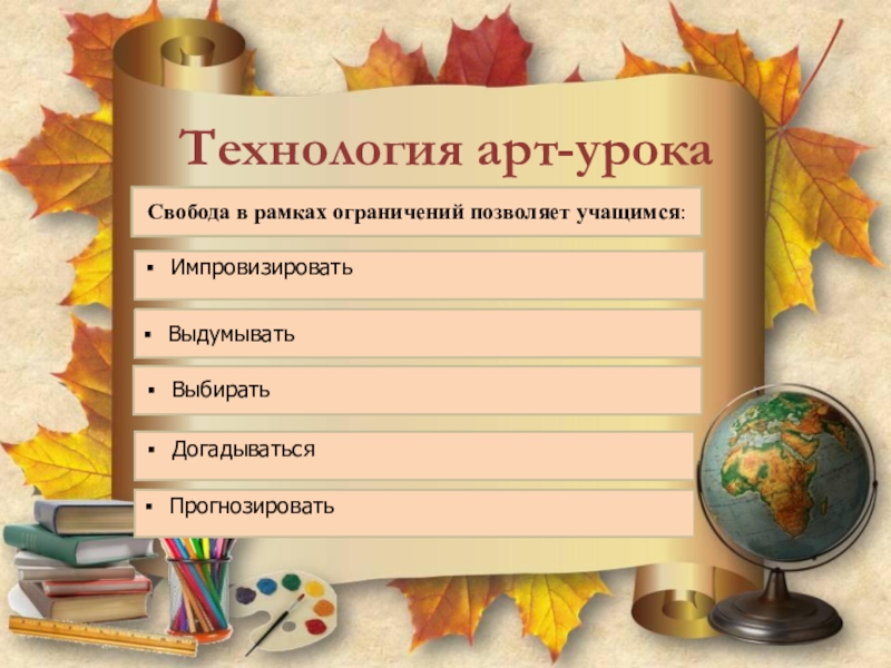 Арт – урок предполагает выдвижение игровой ситуации как основы познавательного процесса