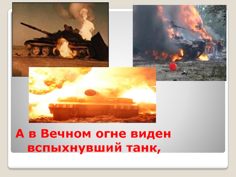 Слайд 7А в Вечном огне виден вспыхнувший танк,