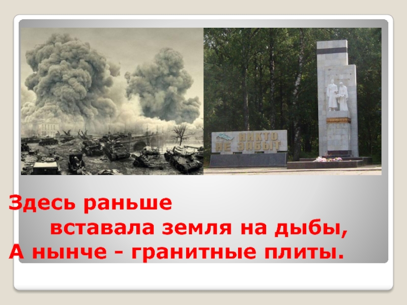 Здесь раньше  		вставала земля на дыбы, А нынче - гранитные плиты.