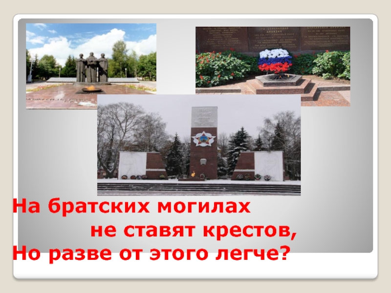 Слайд 12На братских могилах не ставят крестов, Но разве от этого легче?