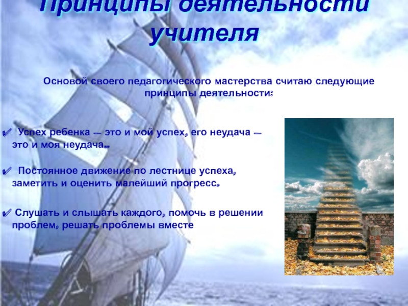 Постоянное движение по лестнице успеха, заметить и оценить малейший прогресс.