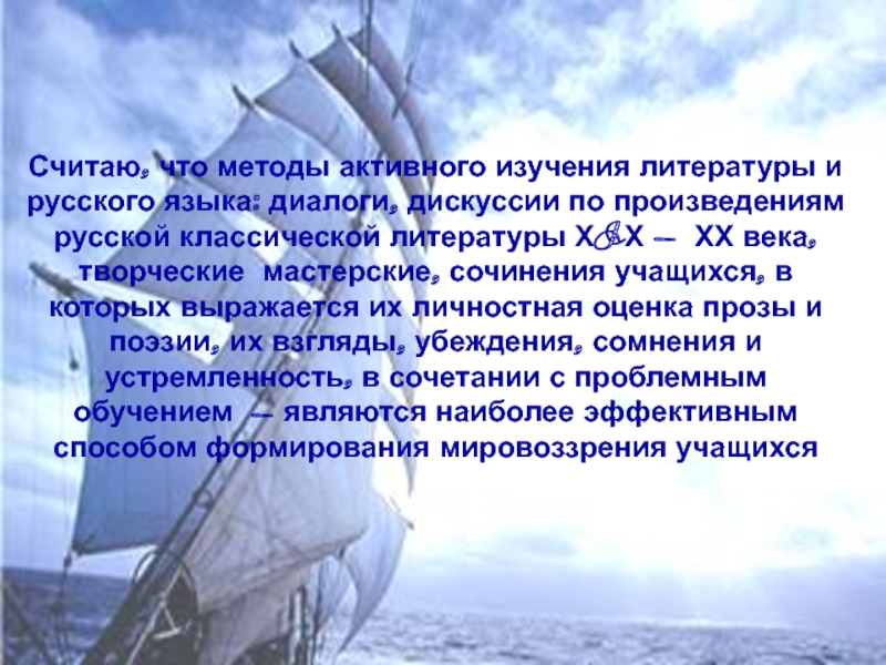 Мировоззрение - это парус, под которым мы плывем по жизни. Как настроим парус, туда и приплывем.