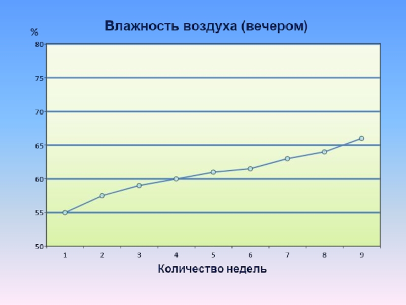 Влажность - один из важнейших параметров воздуха, непосредственно влияющих на здоровье человека. Оптимальный уровень влажности, при которой человек чувствует себя наиболее комфортно 60-70%.